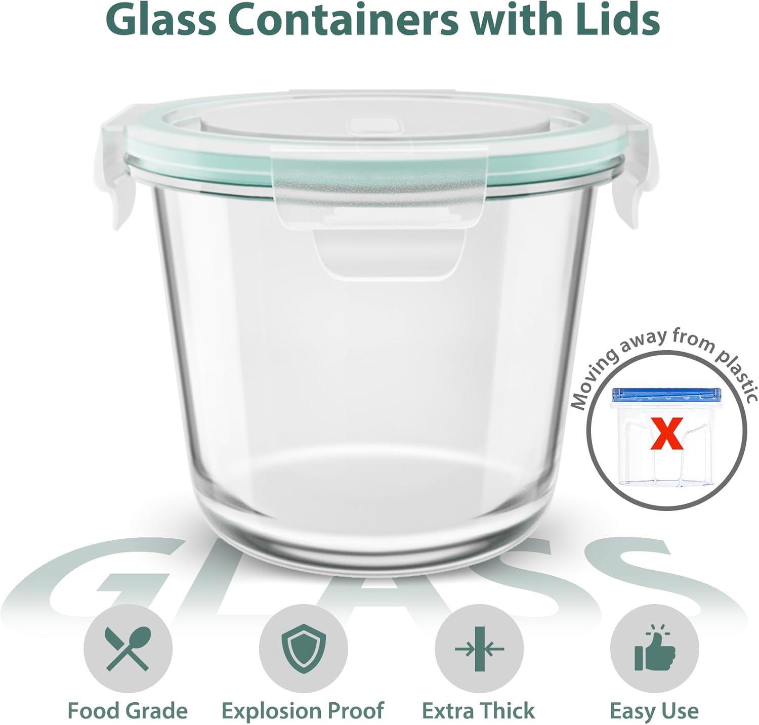 30oz Glass Meal Prep Containers with Lids, Airtight 3.75 Cup Food Storage Containers Set, Heat-Resistant BPA-Free Glass Containers for Soup Leftover, Microwave, Dishwasher, and Freezer Safe (4 Packs)(Turquoise)
