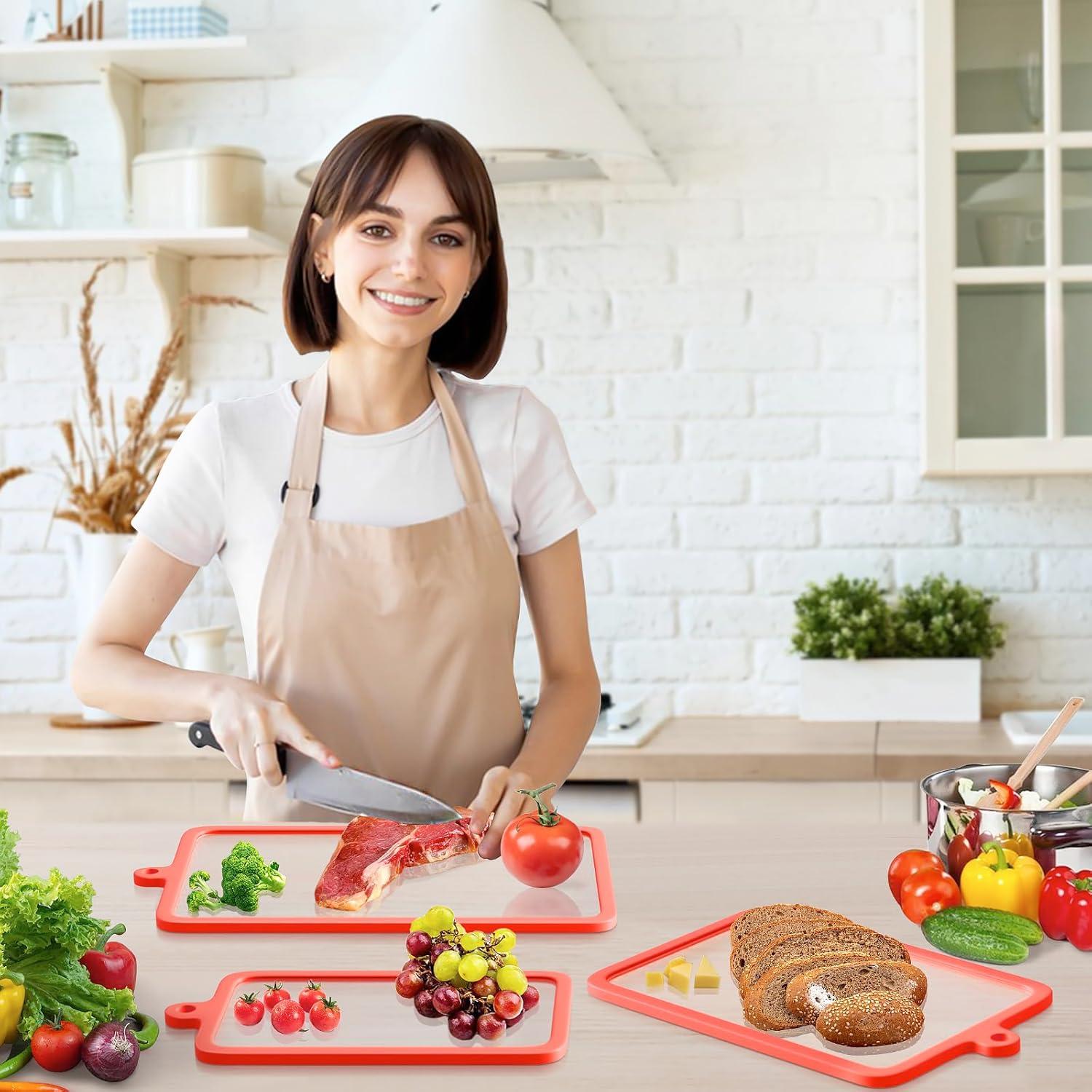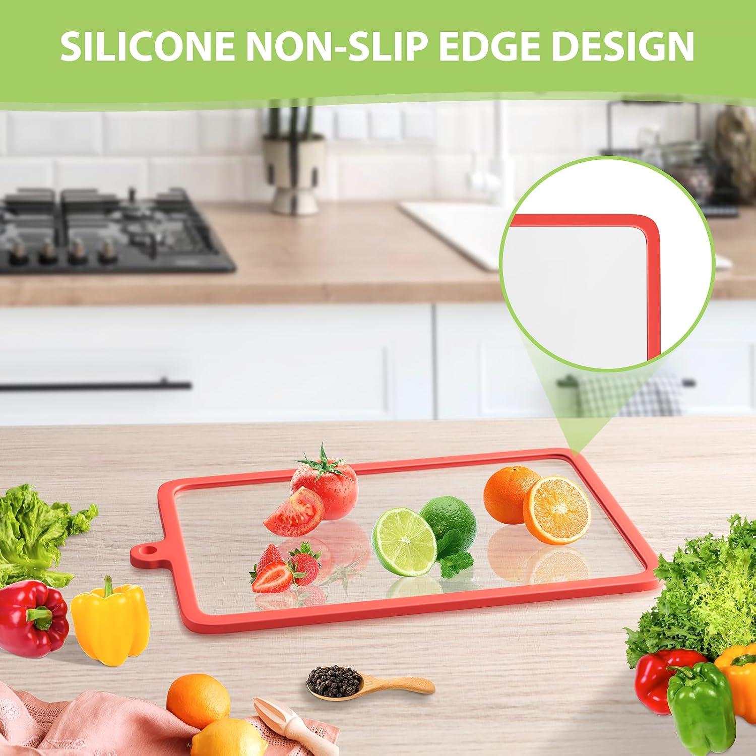 【Secure Grip with Silicone Edges】The bright red silicone edging provides a secure hold on any countertop surface, significantly reducing the risk of slipping while you chop. These edges also absorb shocks from accidental bumps, protecting the board’s structure and prolonging its lifespan. The enhanced grip and safety features enable confident, precise food preparation every time