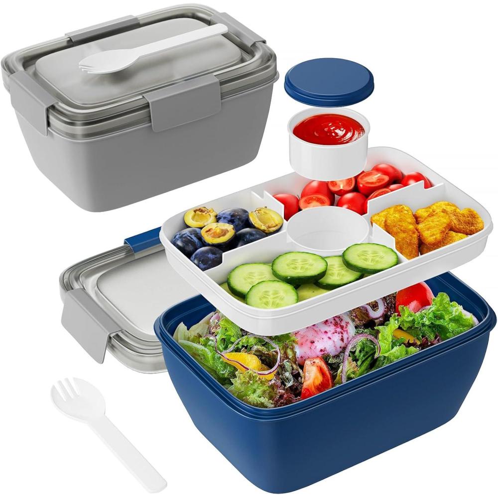 Don’t break the bank! Get the Freshmage Large Salad Container for Lunch, 2 Packs 68oz Salad Bowls with 5 Compartments, Salad Dressings Container for Salad Toppings, Snacks, Men, Women (Pink+Blue)(Gray+Blue) you want at a price you can afford during our markdown sale.
