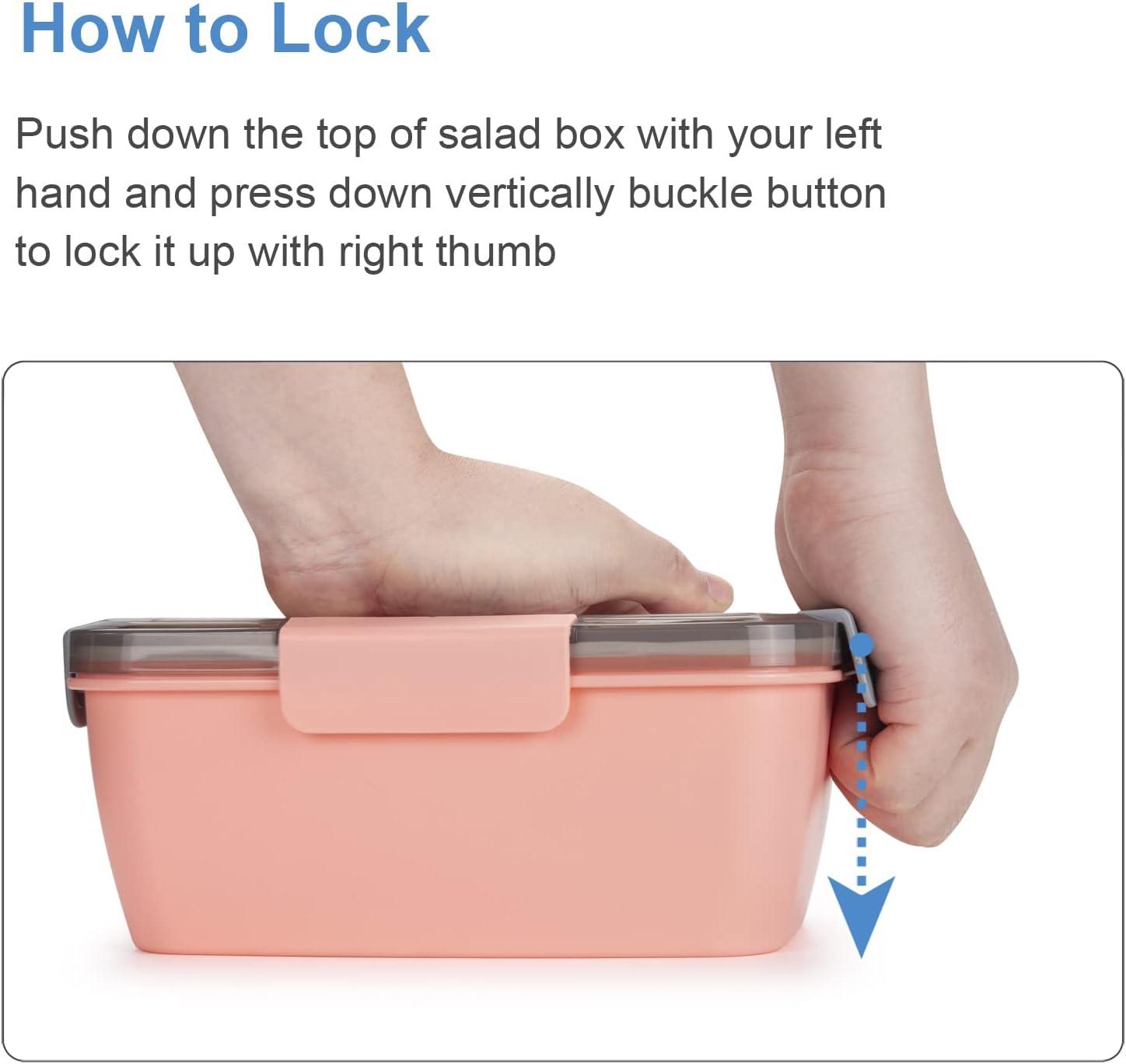 Leak-proof design: The lid of salad lunch container is equipped with tight locks sealing up tighter than those with rubber rim