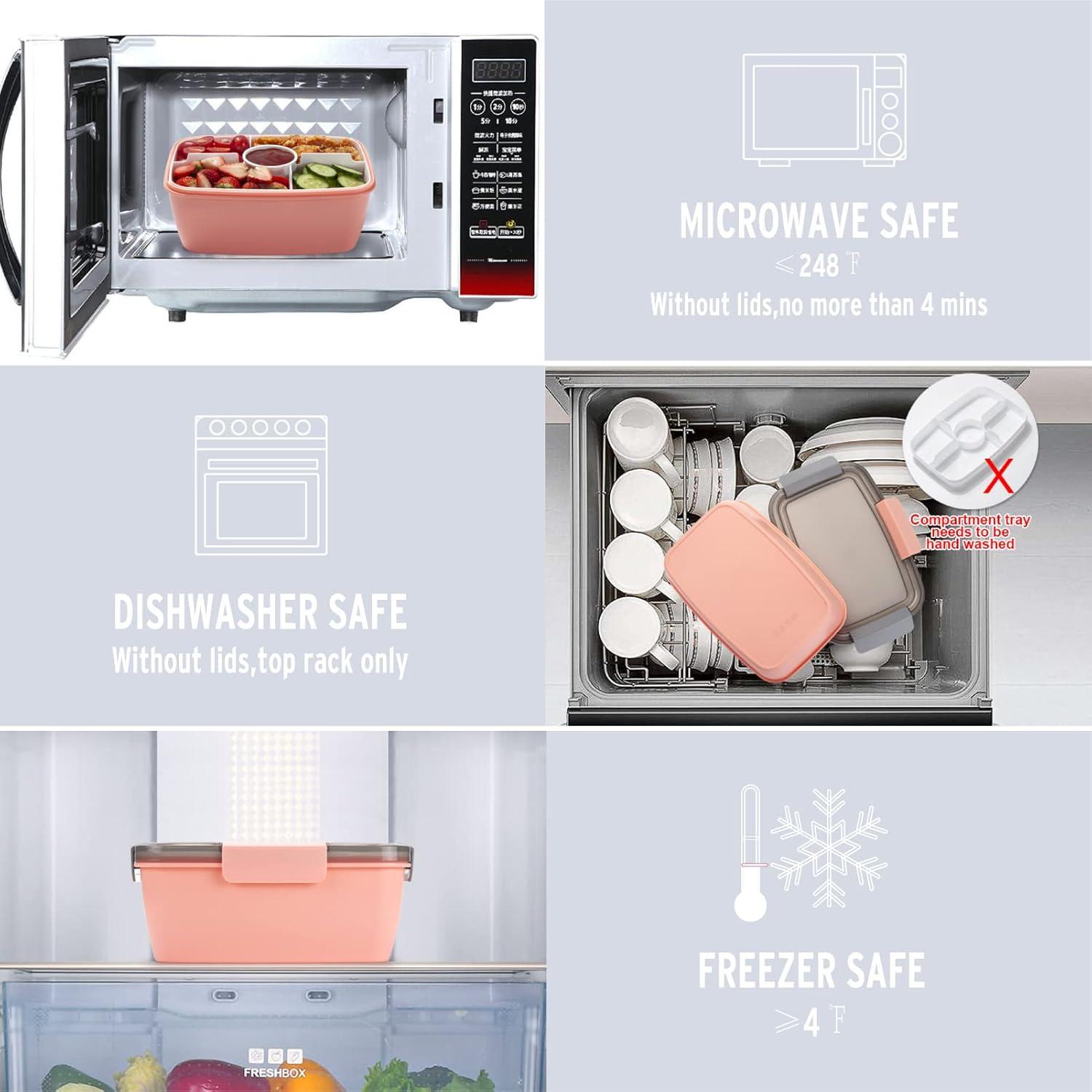 – 5 Compartments to separate salad, snacks, fruits and other food