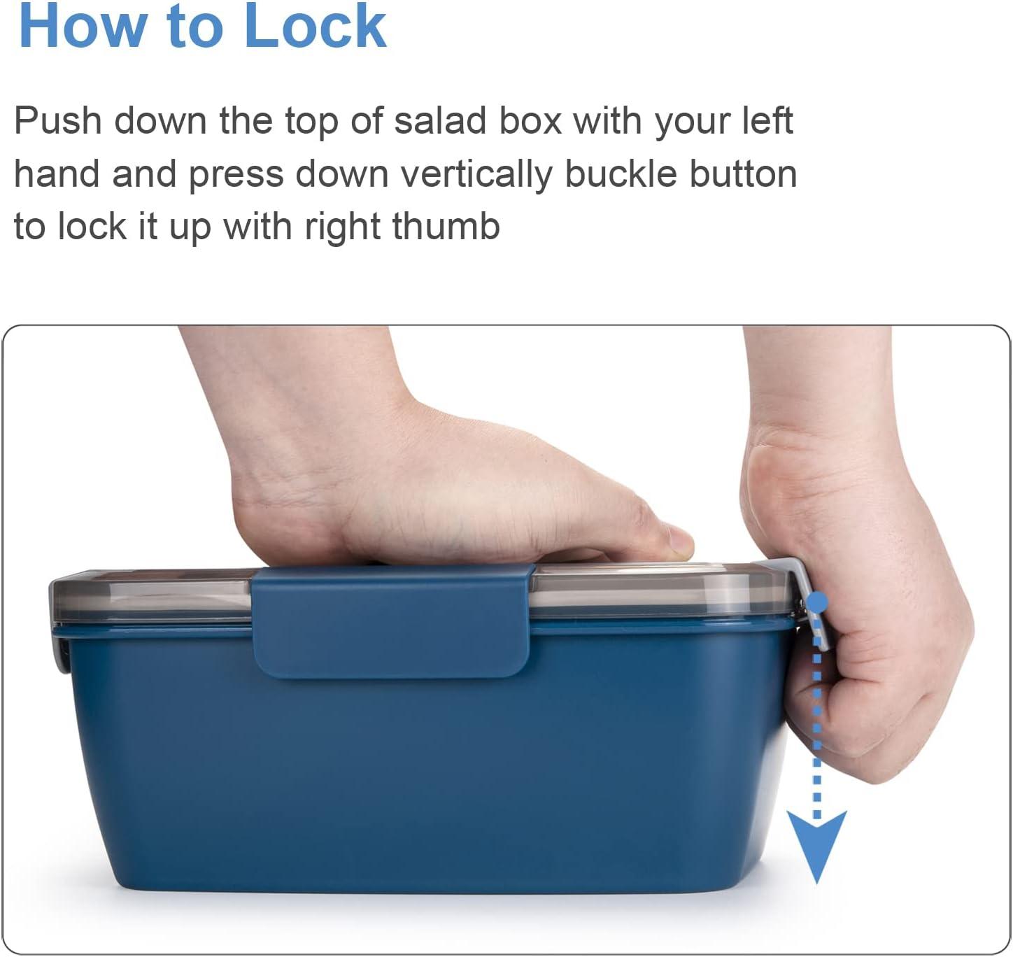 LEAKPROOF SAUCE CONTAINER COMPARTMENT: There is a 3 oz dressing container at the middle of to-go salad container for storing salad dressings, sauce, and other seasonings