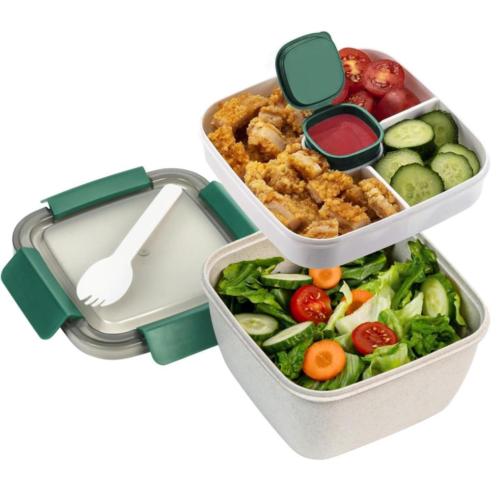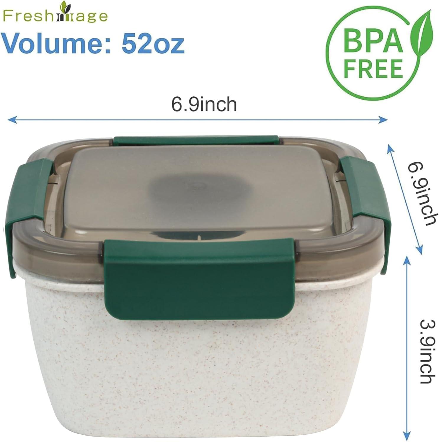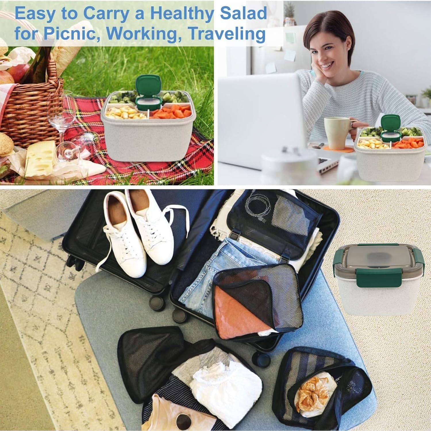 LEAKPROOF SAUCE CONTAINER COMPARTMENT: There is a 3 oz dressing container at the middle of to-go salad container for storing salad dressings, sauce, and other seasonings