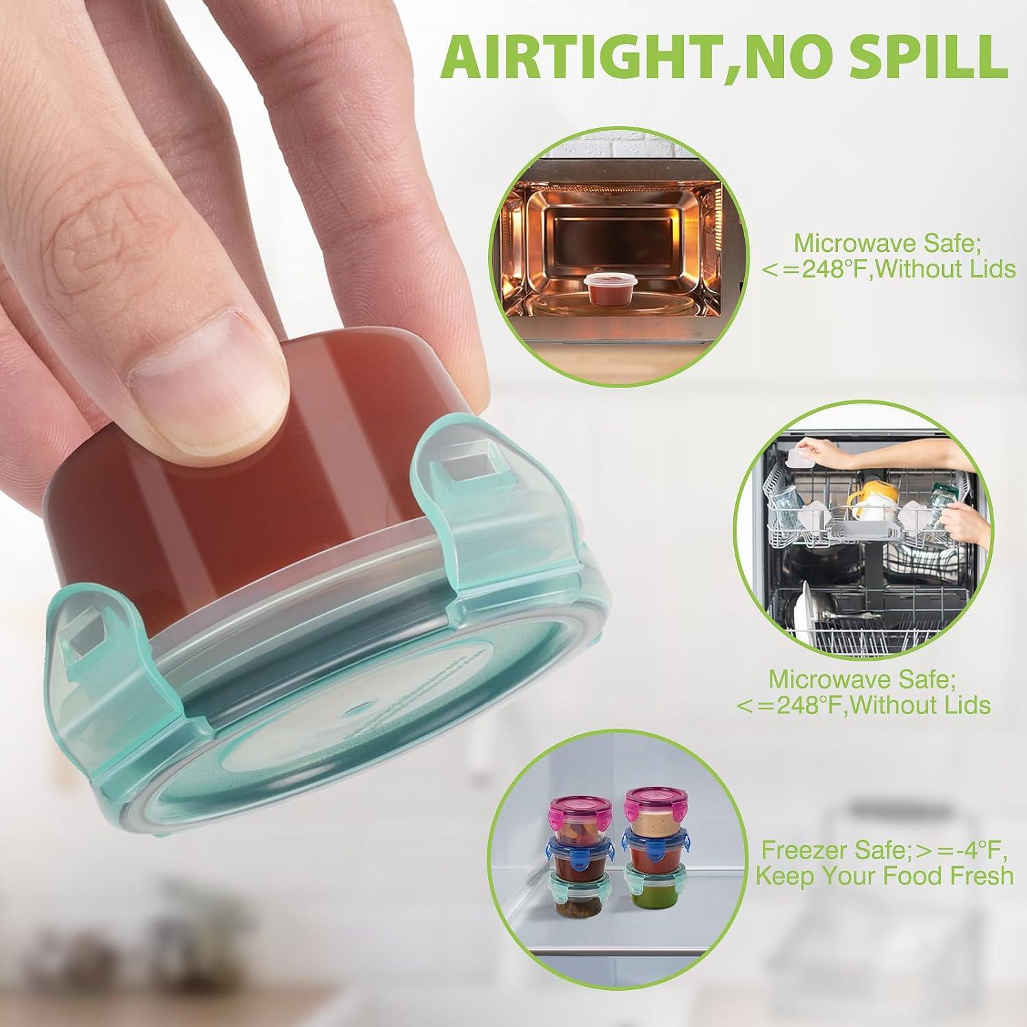 Portable Size: These small containers are the perfect size for packing up some dipping sauce or condiments to go with lunch box, and lids fit tightly that you won't spill the contents. In addition to sauce container, you will find these also are perfect for small servings of snack, even for craft supplies.